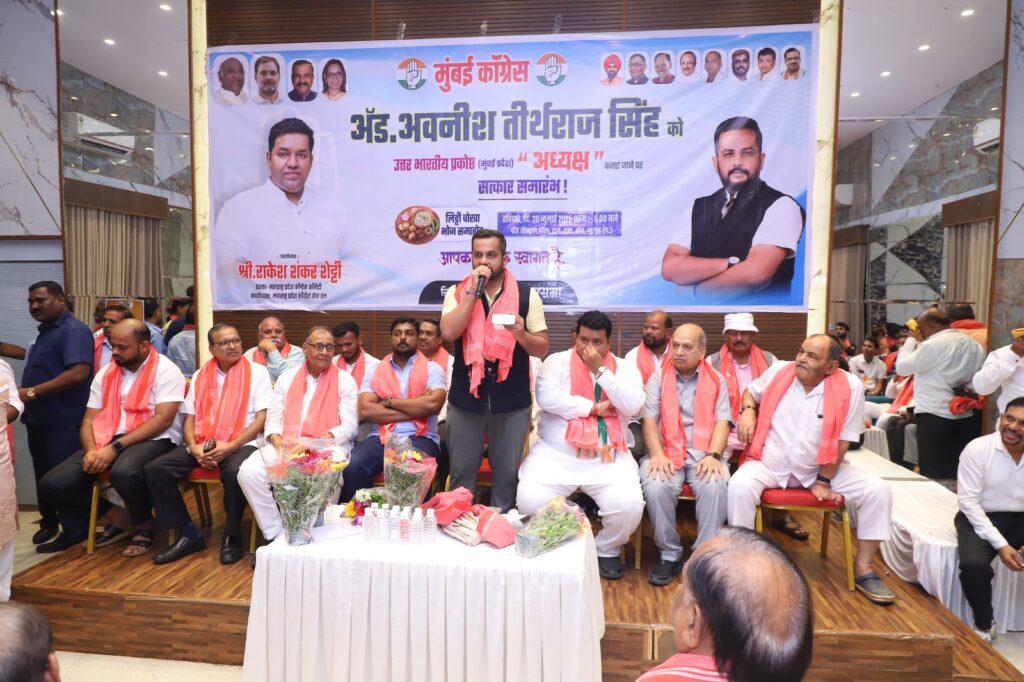 मुंबई. भारतीय राष्ट्रीय कांग्रेस के उत्तर भारतीय प्रकोष्ठ (मुंबई प्रदेश) के नवनियुक्त अध्यक्ष पद एड. अवनीश सिंह का सम्मान में एक भव्य कांग्रेस सेवादल महाराष्ट्र प्रदेश की ओर से सत्कार किया गया. रविवार, 20 जुलाई 2025 को शाम 6:00 बजे, जी.एस. शेट्टी ग्रैंड सेंट्रल हॉल, एन. एस. रोड, नवभारत नूतन विद्यालय के सामने, मुलुंड- पश्चिम में एड. सिंह का सत्कार समारोह आयोजित किया गया था. आयोजित किया गया.