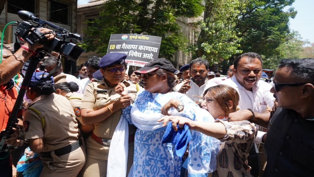 मुंबई . नेशनल हेराल्ड मामले में राहुल गांधी और सोनिया गांधी के खिलाफ प्रवर्तन निदेशालय (ईडी) द्वारा चार्जशीट दायर करने पर कांग्रेस आक्रामक हो गई है. इसे सियासी षड्यंत्र बताते हुए बुधवार को मुंबई में कांग्रेस की ओर से ईडी कार्यालय पर मोर्चा निकाला गया. इस मोर्चे को पुलिस ने रोकने का प्रयास किया. इस दौरान हुई धक्का मुक्की में कांग्रेस की मुंबई प्रदेश अध्यक्ष व सांसद वर्षा गायकवाड़ को हल्की चोट लग गई.