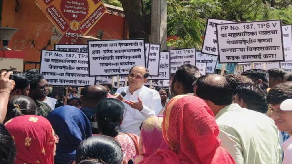 मुंबई. विले पार्ले-पूर्व के टाउन प्लान क्रमांक 5 अंतर्गत अंतिम भूखंड़ क्रमांक 187 पर सतत की जा रही अवैध कार्रवाइयों के खिलाफ नागरिकों ने शनिवार को क्षेत्र के विधायक पराग अलावनी के नेतृत्व में मनपा के पश्चिम विभाग कार्यालय पर मोर्चा निकाला. विधायक अलावणी ने कहा कि उक्त भूखंड़ पर विकास कार्य कर रहे सातेरी बिल्डर के इशारे पर बार-बार की जानेवाली अवैध कार्रवाइयों के खिलाफ सख्त कार्रवाई की मांग स्थानीय जनता लंबे समय से कर रही है. लेकिन मनपा की ओर से अब कोई कार्रवाई नहीं की गई है. नतीजतन स्थानीय निवासियों ने के-ईस्ट विभाग कार्यालय के बाहर विरोध प्रदर्शन किया.