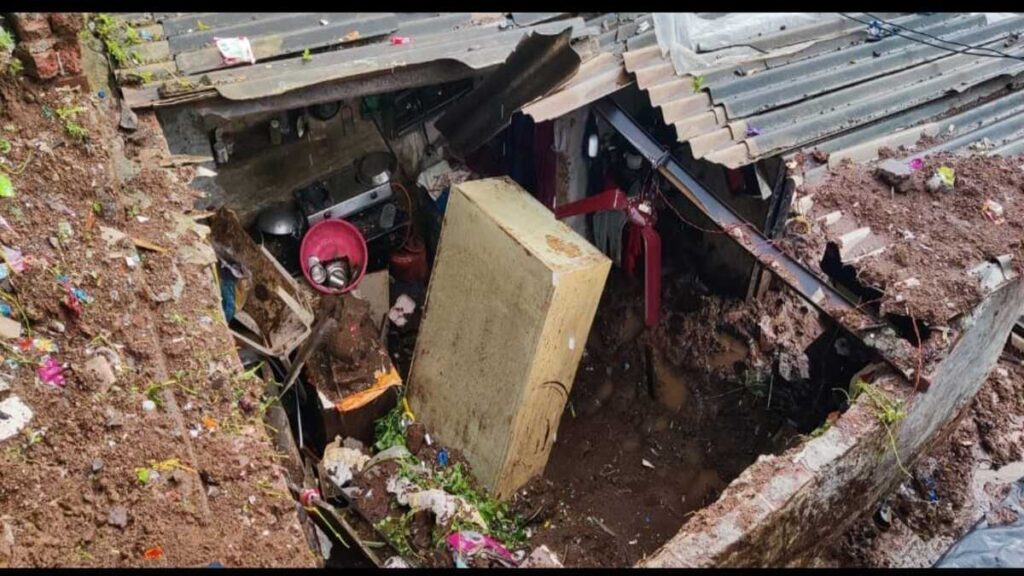 चॉल की इमारत पर गिरा पहाड़ का मलबा