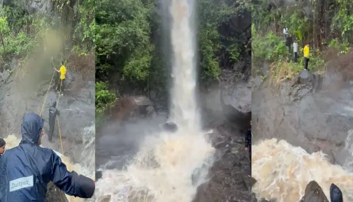 मुंबई. भारी बारिश के कारण मुंबई व आसपास क्षेत्र में स्थित पहाड़ी झरने सक्रिय हो गए हैं. ये झरने मुंबई एमएमआर के पर्यटकों को अपनी तरफ आकर्षित करने लगे हैं. खारघर के सेक्टर 6 स्थित पांडव कड़ा झरना मुंबई के करीब स्थित ऐसे ही पहाड़ी झरनों में से एक है, जहां सोमवार को भारी संख्या में लोग प्राकृतिक झरने में नहाने का लुत्फ उठाने पहुंचे थे. इस दौरान मुंबई के साइन कोलीवाड़ा निवासी 5 युवक एक अनहोनी का शिकार होने से बाल बाल बच गए. झरने के जल का परवाह अचानक तेज होने के कारण ये 5 युवक तेज धार के बीच स्थित चट्टानों में फंस गए थे. बताया जा रहा है कि जमीन की सतह से लगभग 600 से 700 मीटर नीचे झरने नेवई युवक फंसे थे. पानी का बहाव तेज होने के कारण वे बाहर नहीं निकल पा रहे थे.लेकिन सूचना मिलते ही मौके पर पहुंची खारघर पुलिस और दमकल कर्मियों ने रस्सी की मदद से पांच युवाओं को सुरक्षित बचा लिया है. इनकी पहचान महेश सुभाष शिरगढ़ (22), राकेश वेलमुरगन (18), प्रतीक जोग वया (18), रमेश चिंगमेटे (19), साहिल शेख (21) के रूप में सामने आई है.