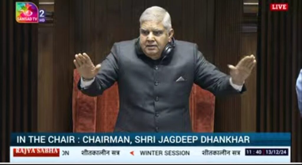शुक्रवार को राज्यसभा में कार्यवाही शुरू होते ही सभापति ने शतरंज के खिलाड़ी डी गुकेश को विश्व चैंपियन बनने पर सदन और 140 करोड़ देशवासियों की तरफ से बधाई दी। उन्होंने कहा कि डी गुकेश ने विश्व पटल पर भारत का परचम लहराया है। उन्हें बहुत बहुत बधाई। इसके बाद सभापति ने संबंधित सदस्यों से आवश्यक दस्तावेज सदन के पटल पर रखने को कहा। केंद्रीय राज्य मंत्री एल मुरुगन ने सभा में लंबित विधेयक को लेकर अपना वक्तव्य रखा।