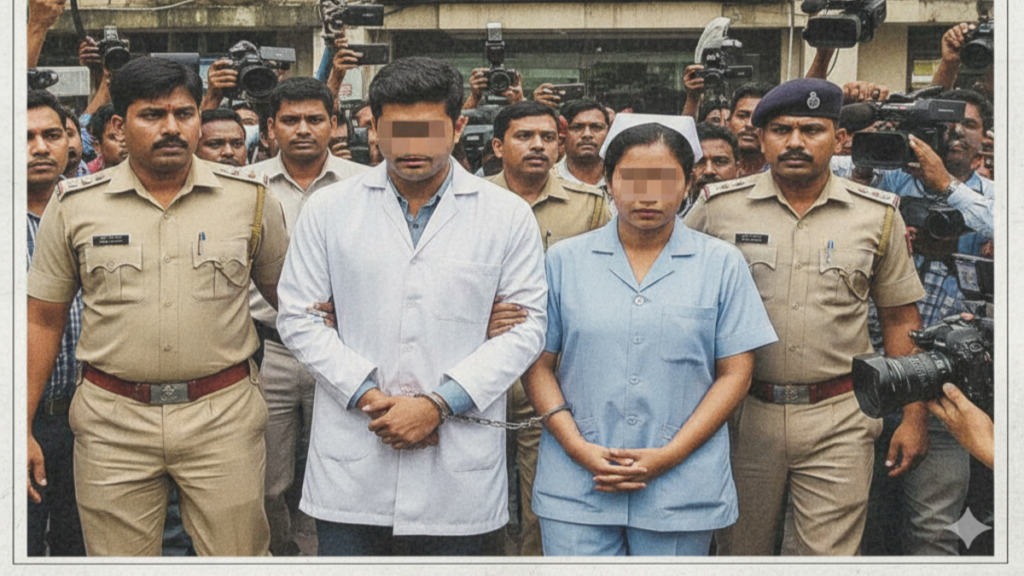 इस चौंकाने वाली घटना में सामने आया है कि इस गिरोह में एक निजी अस्पताल के डॉक्टर और एक नर्स शामिल थे।