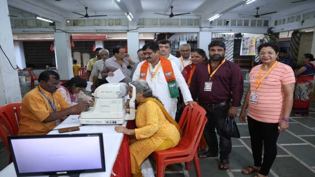 मुंबई. प्रधानमंत्री नरेंद्र मोदी के 75वें जन्मदिन के उपलक्ष्य में बीजेपी पूरे देश में सेवा पखवाड़ा अभियान चला रही है. इस अभियान के अंतर्गत पूर्व विधायक एवं नगरसेवक अतुल शाह तथा आरव आई केयर के सहयोग से 28 सितंबर 2025 को लाड वाड़ी, वीपी रोड पर एक नेत्र चिकित्सा एवं निःशुल्क चश्मा वितरण शिविर का आयोजन किया गया. इस दौरान भारी बारिश के बाद भी बड़ी संख्या में क्षेत्र के निवासी आंखों की जांच कराने पहुंचे.