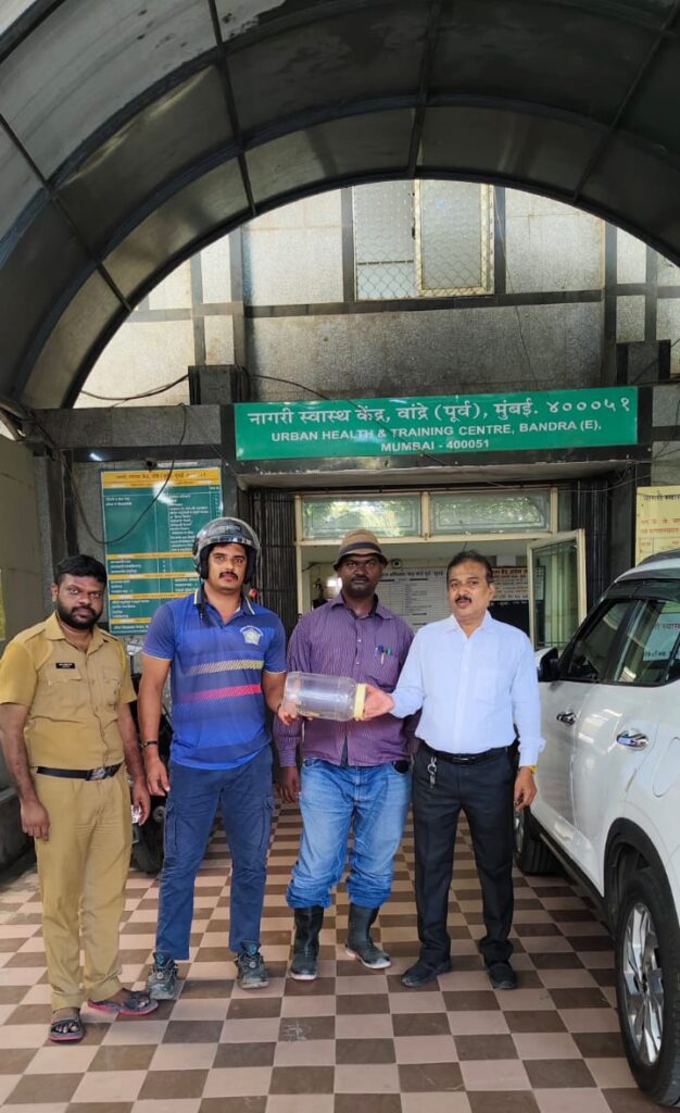 मिली जानकारी के अनुसार, गुरुवार को सुबह 8 बजे के करीब ‘वापरा’ (वाइल्ड एनिमल प्रोटेक्शन एंड रेस्क्यू एसोसिएशन) से जुड़े सर्प मित्र अतुल कांबले को अर्बन हॉस्पिटल नाम से लोकप्रिय बांद्रा पूर्व स्थित सरकारी नागरी स्वास्थ केंद्र के पास सांप देखे जाने की सूचना मिली थी. माहिम पुलिस कॉलोनी निवासी सर्प मित्र सचिन मोरे के साथ मौके पर पहुंचे कांबले ने संबंधित वन अधिकारी रोशन शिंदे को उक्त सर्प के बारे में जानकारी दी तथा बाद में उसे पकड़ कर सुरक्षित वन क्षेत्र में मुक्त कर दिया. बताया जा रहा है कि उक्त सर्प विष हीन प्रजाति का सर्प था, जो कि आम तौर पर पानी में पाया जाता है. ये सर्प भोजन (चूहे) आदि की तलाश में नालियों के रास्ते स्वास्थ्य केंद्र पहुंच गया होगा. सर्प मित्रों ने सर्प को नुकसान नहीं पहुंचाने के लिए लोगों का आभार माना तथा उन्हें सर्प के बारे में जानकारी दी. इसी तरह स्वास्थ्य केंद्र के मुख्य प्राध्यापक ने सर्प को पकड़ कर सुरक्षित वन क्षेत्र में पहुंचाने तथा लोगों को भय से मुक्ति दिलाने के लिए सर्प मित्रों का आभार माना.
