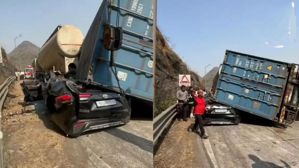 प्राथमिक जानकारी के अनुसार, पुणे से मुंबई की ओर आ रहा एक तेज रफ्तार कंटेनर अनियंत्रित हो गया। ढलान और मोड़ के कारण चालक का नियंत्रण छूट गया और कंटेनर ने आगे चल रहे वाहनों को टक्कर मार दी। इसी दौरान कंटेनर एक इनोवा कार पर पलट गया, जिससे कार में सवार तीन लोगों की मौके पर ही मौत हो गई।
